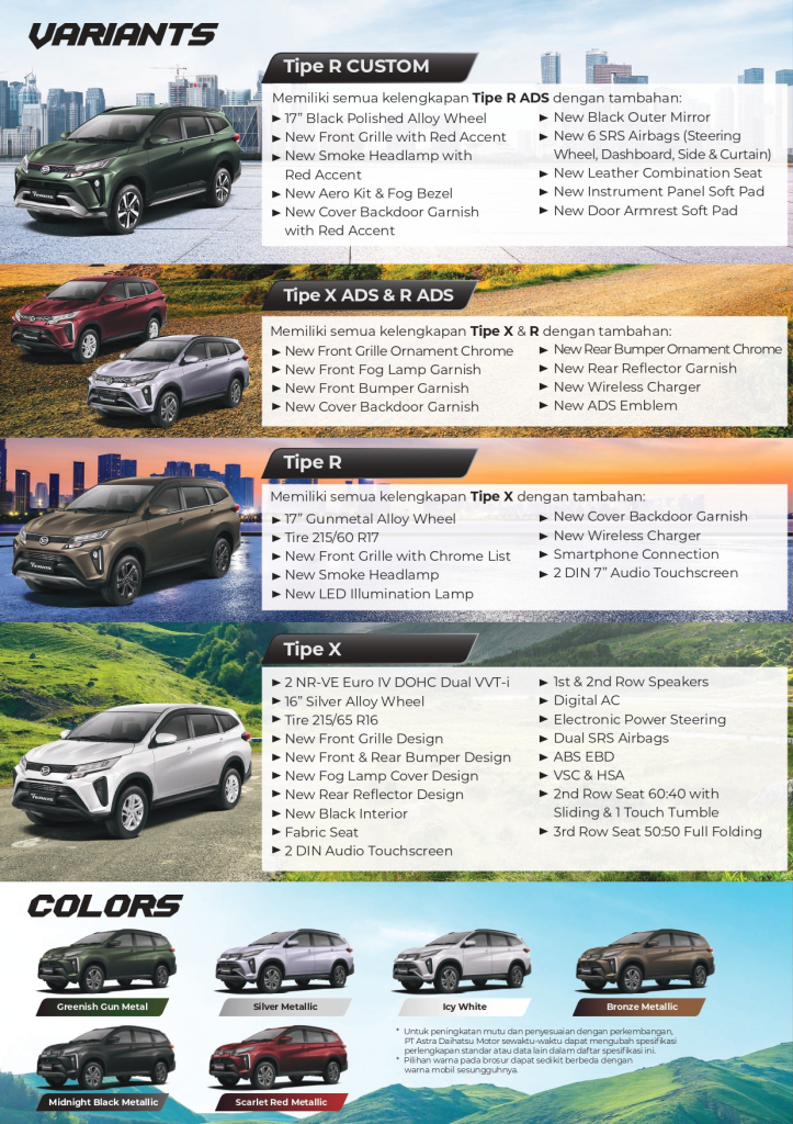 Untuk setiap pembelian unit DAIHATSU Terios berhak mendapatkan FREE ACCESORIES (Akan di update berdasarkan stock, promo dan program yang berlaku)
