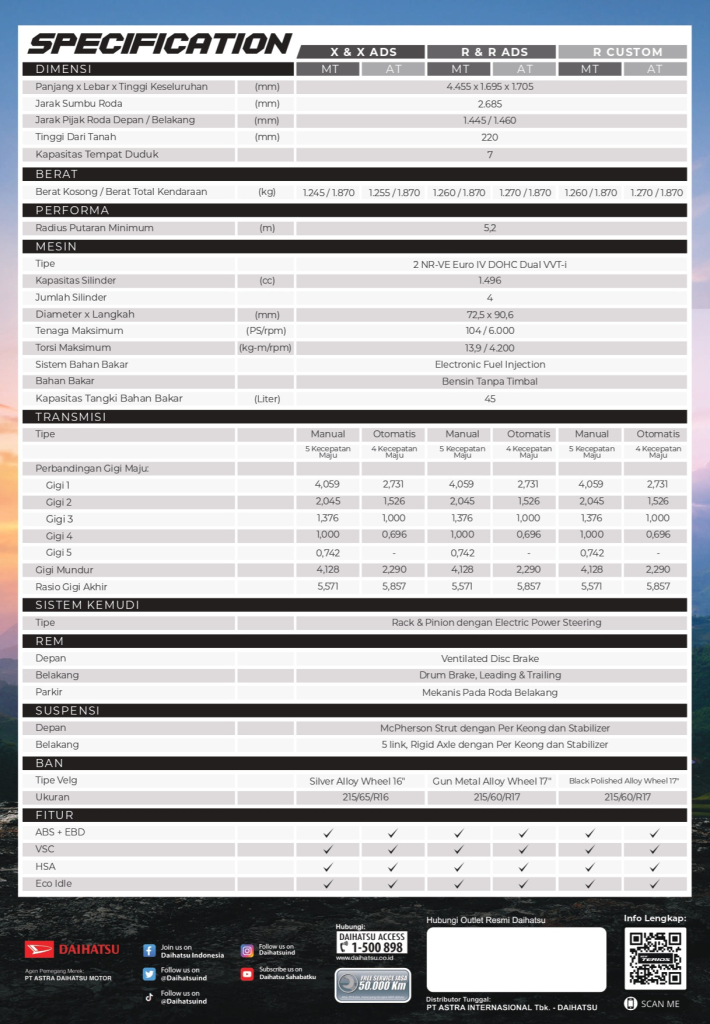 Mesin 1,500 cc yang powerful & irit BBM, dengan Ground Clearance tinggi mampu menemani setiap petualangan