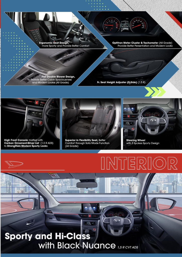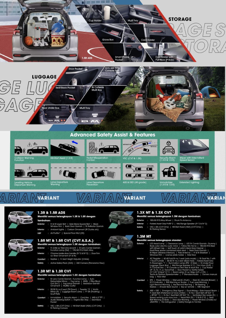 Design sporty & high class dengan ruang kabin yang lega, konfigurasi kursi multifungsi serta bagasi dan tempat penyimpanan yang besar dan lengkap memberikan kenyamanan bagi keluarga Indonesia