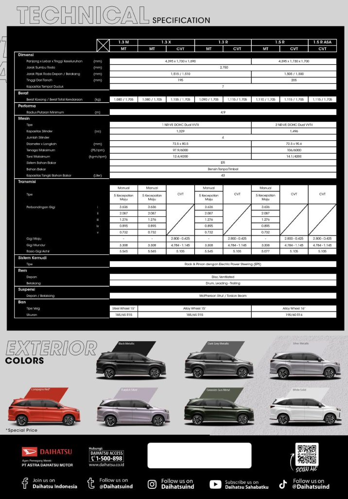 | ALL NEW XENIA 1.5 R MT SC | Rp 268.650.000 |